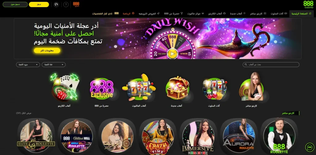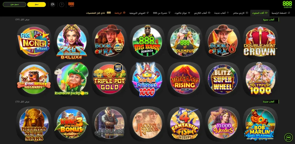 من أبرز ملامح كازينو 888 اون لاين أنه لا يقتصر على تقديم نوع واحد من الترفيه، بل يضع أمام اللاعب مكتبة متكاملة تتوزع بين أساليب لعب مختلفة. هذا التنوع يتيح مساحة واسعة للتجربة، ويجعل كل زيارة جديدة مليئة بالمفاجآت.